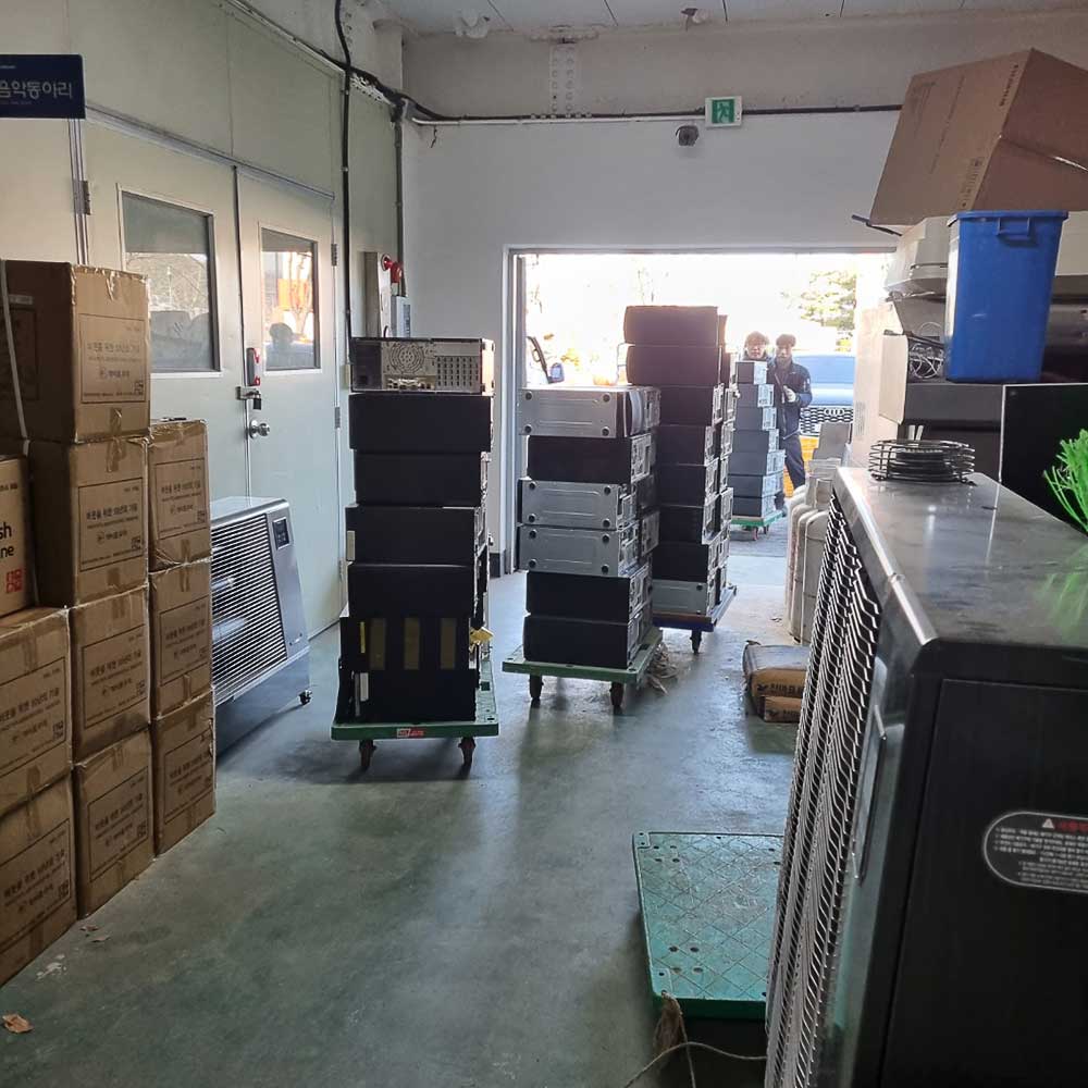앞서 설명 드린 것 처럼 이번 현장은 비교적 수량이 많아 본사 직원이 셋이 파견 되었고, 검수 과정을 통해 전량 수거를 진행해 드렸습니다. 물론 이 과정에서 본사에 큰 도움이 되지 않는 제품도 많지만 사용자 입장에서 보면 업체가 필요한 제품만 빼간다면 그 불편함이 클 것입니다.